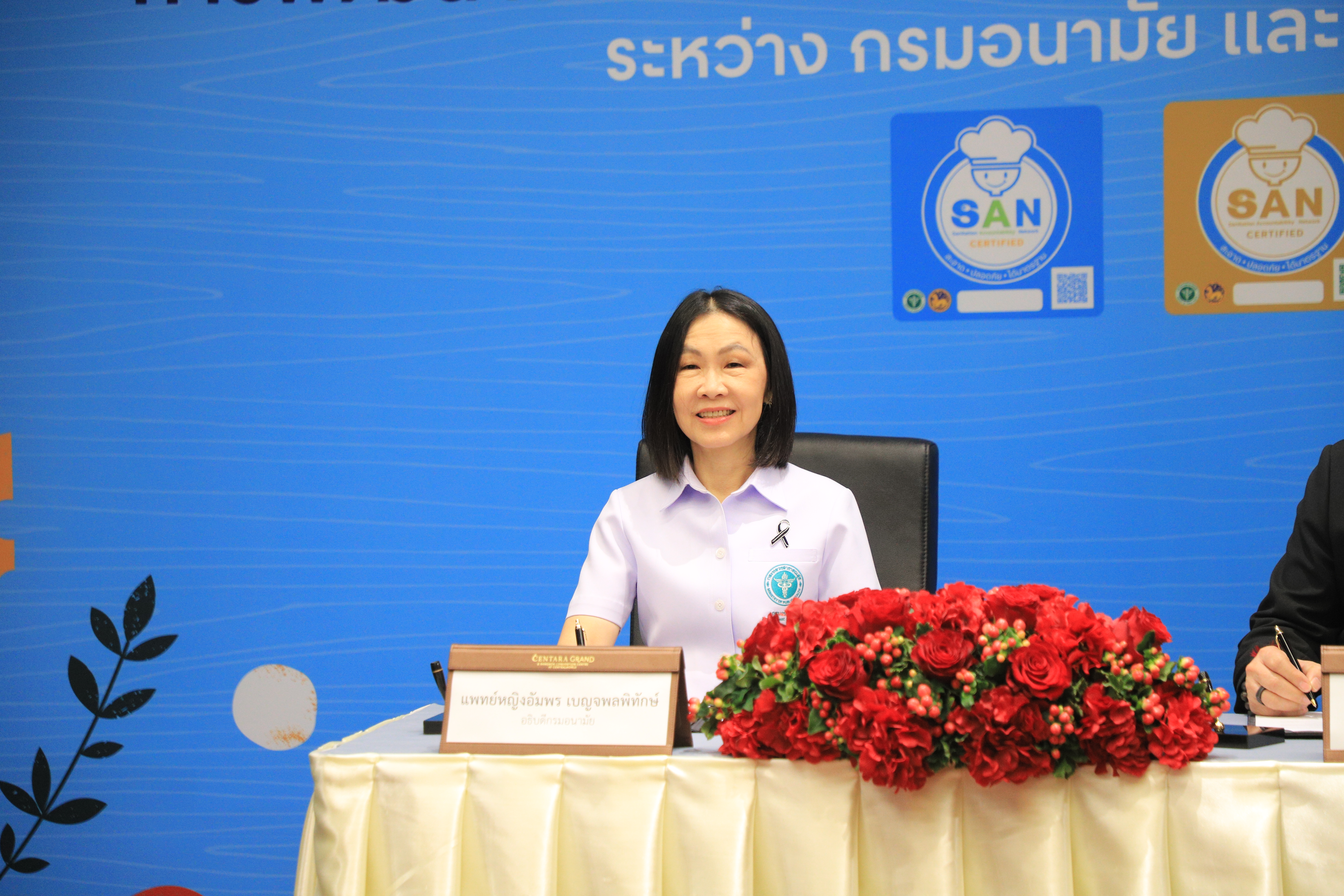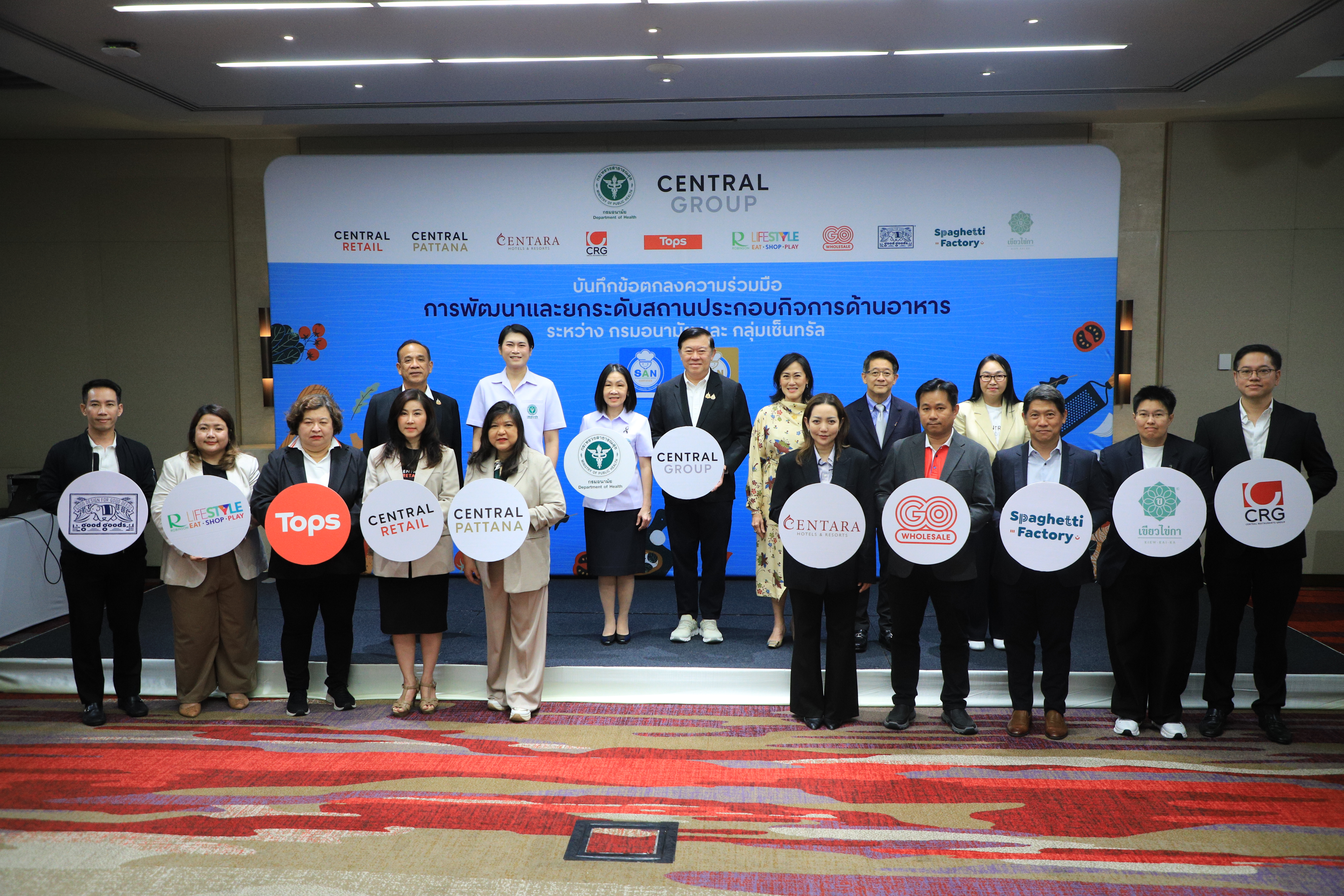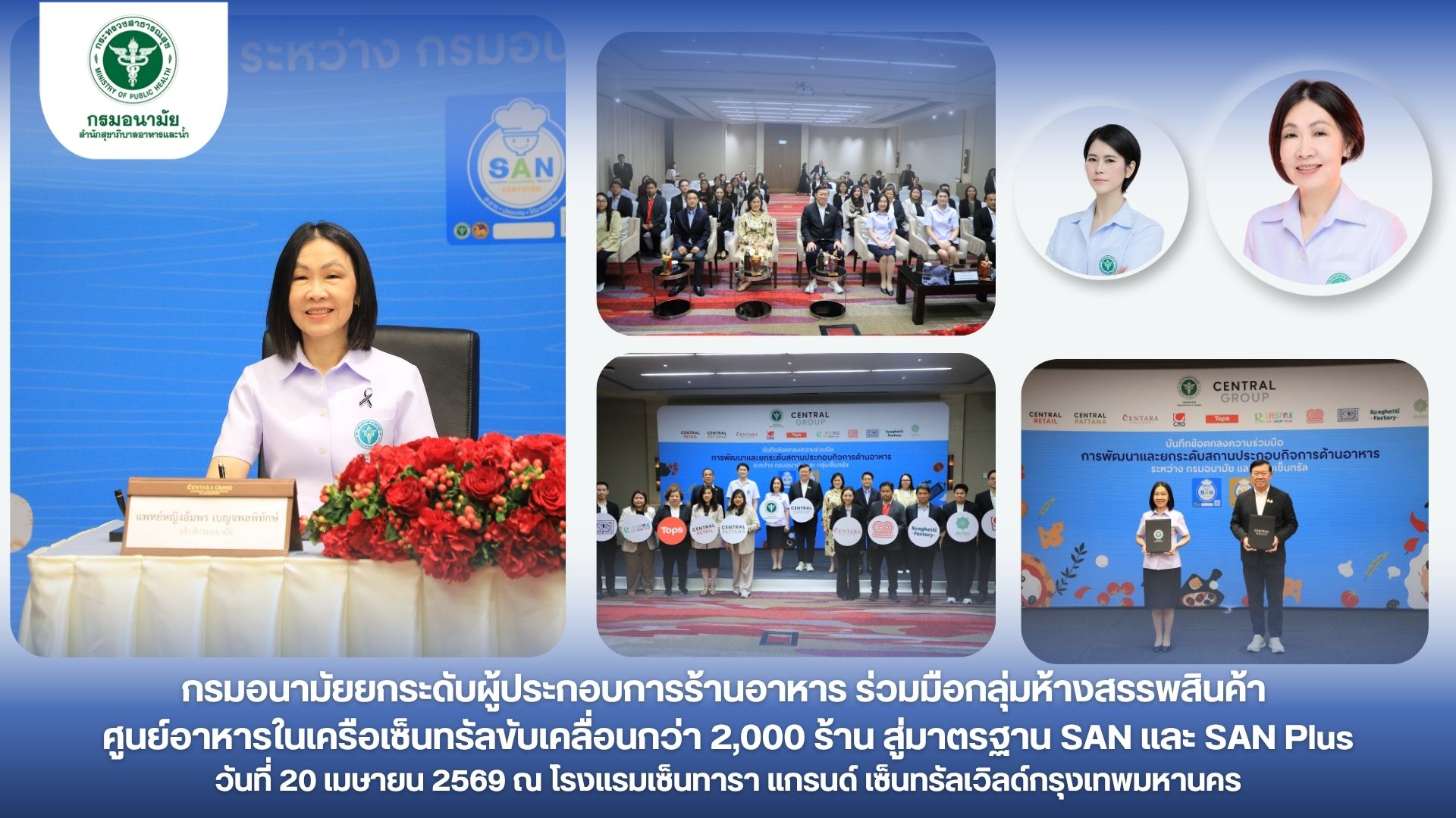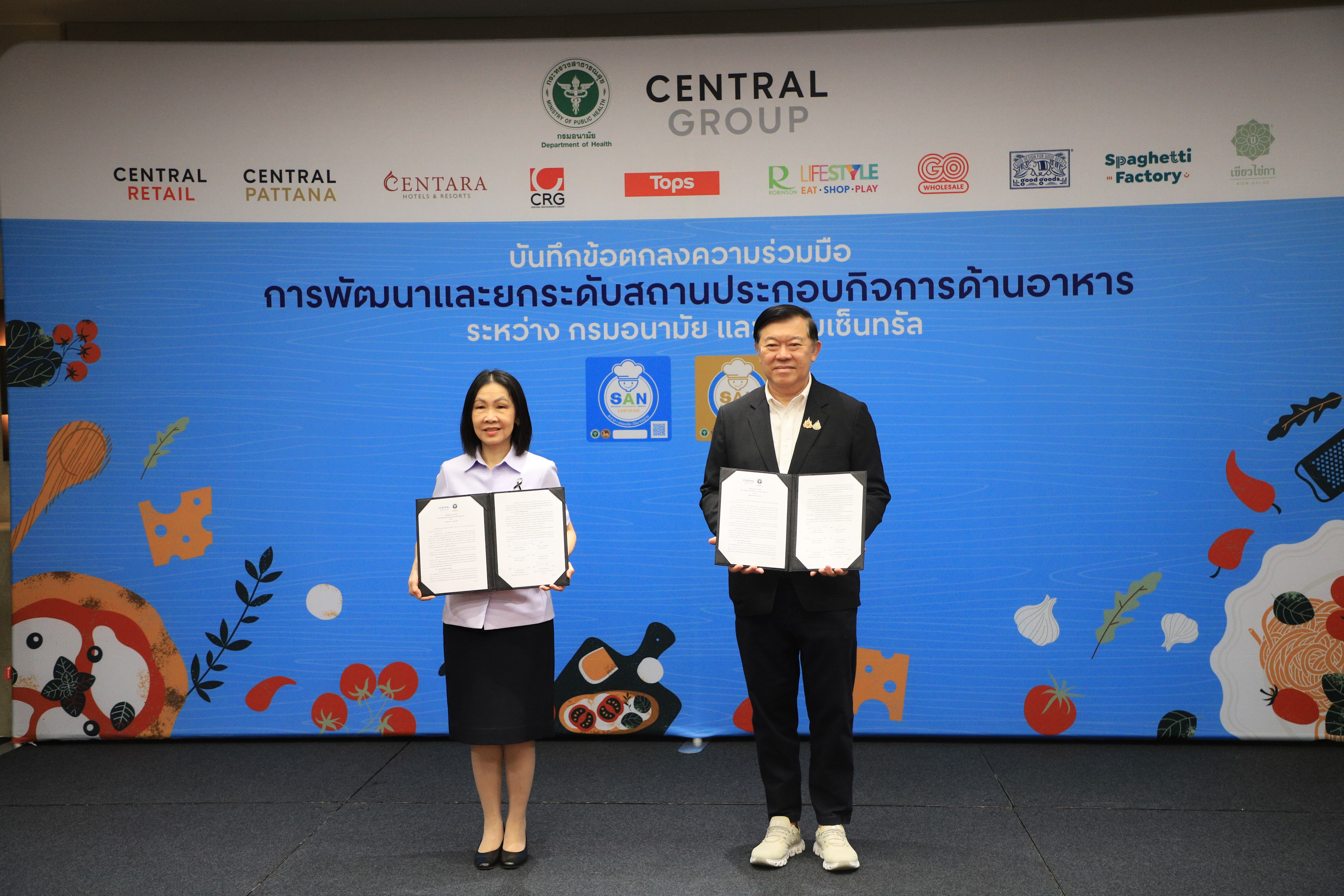 แพทย์หญิงอัมพร เบญจพลพิทักษ์ อธิบดีกรมอนามัย ลงนามความร่วมมือกับคุณพิชัย จิราธิวัฒน์ กรรมการบริหาร กลุ่มเซ็นทรัล โดยเล็งเห็นความสำคัญของการยกระดับมาตรฐานด้านการสุขาภิบาลอาหารที่สะอาด ปลอดภัย ได้มาตรฐาน โดยใช้สัญลักษณ์ SAN เพื่อสร้างความเชื่อมั่นให้ผู้บริโภค และยกระดับคุณภาพระบบอาหารไทยให้เทียบเท่ามาตรฐานสากล ขับเคลื่อนการพัฒนาระบบสุขาภิบาลอาหารอย่างต่อเนื่องทั่วประเทศ แนวปฏิบัติที่เป็นพื้นฐานสำหรับการจัดการด้านสุขาภิบาลอาหารทำให้ง่ายต่อการปฏิบัติ ทั้งด้านสถานที่ ผู้สัมผัสอาหาร อาหารที่สะอาด มีการควบคุมอุณหภูมิที่เหมาะสม การจัดการสัตว์พาหะนำโรค ตลอดจนความสะอาดของภาชนะ เพื่อพัฒนาและยกระดับมาตรฐานสถานประกอบกิจการด้านอาหารครอบคลุมธุรกิจหลักในเครือ อาทิ ท็อปส์ และโก โฮลเซลล์ ในเครือเซ็นทรัลรีเทล ศูนย์อาหารภายในศูนย์การค้าเซ็นทรัล อันเป็นการส่งเสริมความร่วมมือระหว่างภาครัฐและเอกชนในการสนับสนุนการดำเนินงานอาหารปลอดภัยแก่ผู้บริโภค สร้างความเชื่อมั่นแก่ประชาชนในการเข้าถึงอาหารปลอดภัยตลอดห่วงโซ่