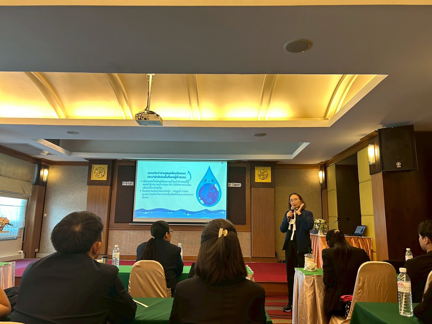 ผอ.ภิญญาพัชญ์ จุลสุข ผู้อำนวยการสำนักสุขาภิบาลอาหารและน้ำ ได้รับมอบหมายจาก นายแพทย์นเรศฤทธิ์ ขัดธะสีมา รองอธิบดีกรมอนามัย เป็นประธานพิธีเปิด - ปิดอบรมเชิงปฏิบัติการพัฒนาศักยภาพผู้รับผิดชอบงานพัฒนาคุณภาพน้ำบริโภค (Training to the trainer) และมอบประกาศนียบัตรแก่ผู้ผ่านการอบรม มีผู้ผ่านการอบรมและเข้ารับประกาศนียบัตร จำนวน 42 คน ประกอบด้วยเจ้าหน้าที่จากสำนักสุขาภิบาลอาหารและน้ำ ศูนย์อนามัย สถาบันพัฒนาสุขภาวะเขตเมือง สำนักงานสาธารณสุขจังหวัด ตลอดระยะเวลาการอบรมจำนวน 3 วัน ผู้เข้าอบรมได้ให้ความสนใจและเข้าร่วมกิจกรรมการอบรมทั้ง ภาคทฤษฎี การทำกิจกรรมกลุ่ม การลงพื้นที่ศึกษาดูงานดูระบบประปา ณ โรงงานผลิตน้ำสามเสน การประปานครหลวง และแลกเปลี่ยนเรียนรู้ ทำให้เกิดการพัฒนาองค์ความรู้และภาคีเครือข่ายผู้ปฏิบัติงาน ทั้งนี้ การประเมินผลต้องมีผลการทดสอบความรู้หลังการอบรม และเข้าร่วมกิจกรรมครบถ้วนแต่ละกิจกรรมต้องไม่น้อยกว่าร้อยละ 80 (เฉลี่ยร้อยละ 88)