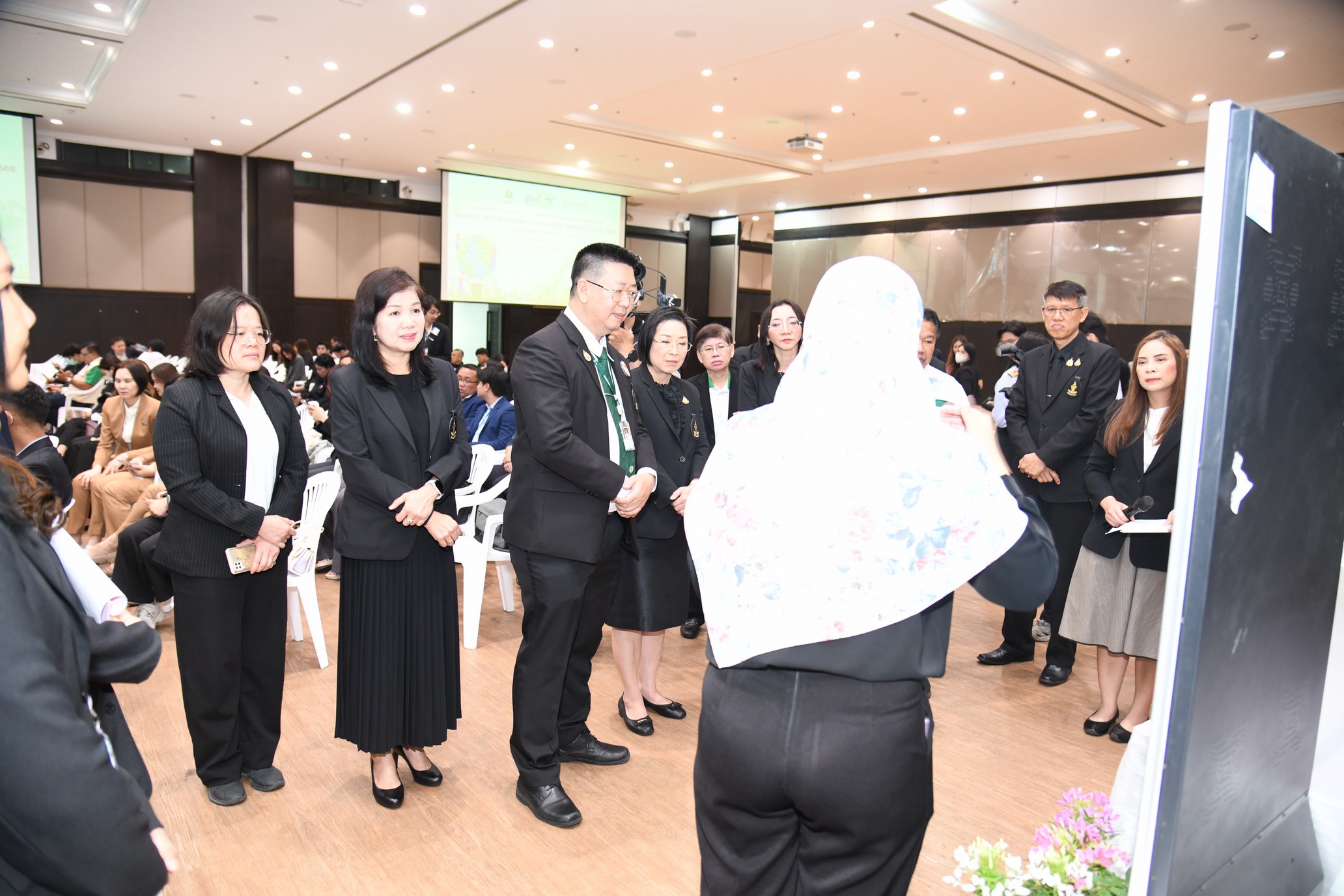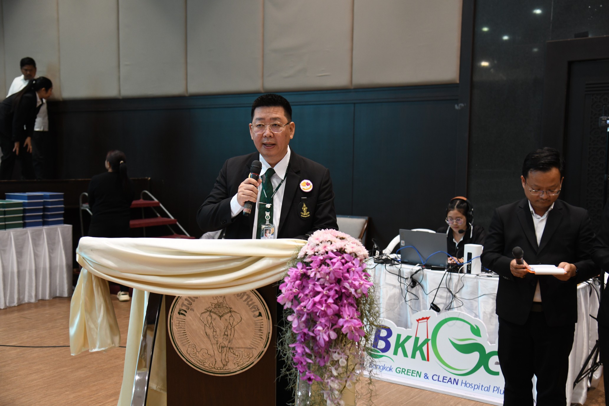 ผอ.ภิญญาพัชญ์ จุลสุข ผู้อำนวยการสำนักสุขาภิบาลอาหารและน้ำ มอบหมายให้กลุ่มภารกิจรูปแบบใหม่และการพัฒนาที่ยั่งยืน พร้อมด้วยกลุ่มยกระดับภาคีเครือข่ายและสื่อสารความเสี่ยง และกลุ่มพัฒนาระบบจัดการคุณภาพน้ำบริโภค เข้าร่วมพิธีมอบโล่รางวัล การดำเนินการด้านอนามัยสิ่งแวดล้อมในสถานพยาบาล Bangkok GREEN & CLEAN Hospital Plus (BKKGC+) ประจำปี 2568 เพื่อเชิดชูเกียรติและสร้างขวัญกำลังใจแก่สถานพยาบาลที่ผ่านเกณฑ์มาตรฐาน โดยมี รศ.ทวิดา กมลเวชช รองผู้ว่าราชการกรุงเทพมหานคร เป็นประธานในพิธีฯ โดยในปีนี้มีสถานพยาบาลในพื้นที่กรุงเทพมหานครได้รับรางวัลรวมทั้งสิ้น 32 แห่ง สะท้อนความร่วมมือในการยกระดับระบบบริการสาธารณสุขให้สะอาด ปลอดภัย และเป็นมิตรต่อสิ่งแวดล้อม ตามนโยบายเมืองน่าอยู่สำหรับทุกคน